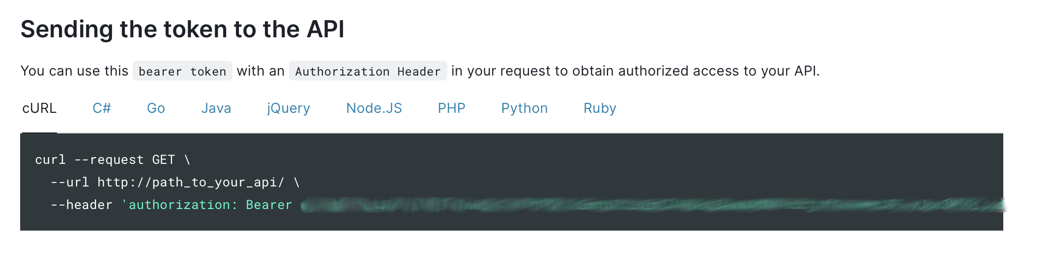 Running this command uses a special machine-to-machine access token in the request that validates that the service configuration is correct and the tokens from Auth0 are being processed.